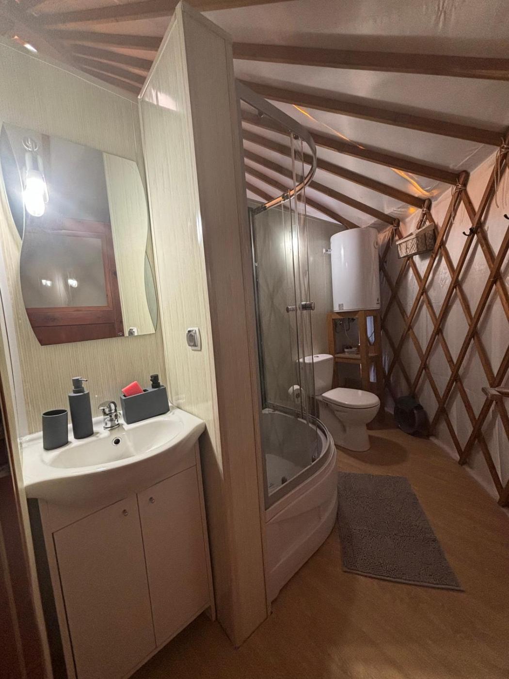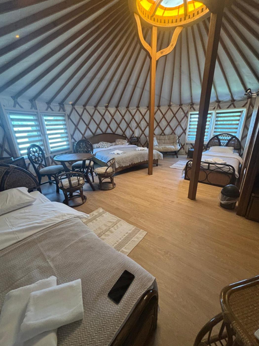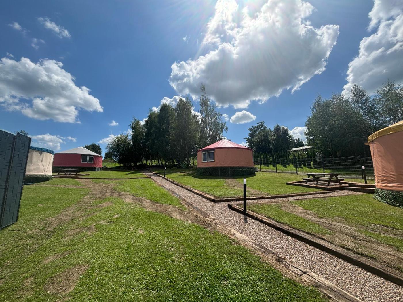 Namiot. The tent provides air conditioning, a private entrance, as well as a private bathroom featuring a shower and a hairdryer. Among the room amenities are a tea and coffee maker, a barbecue, heating as well as an outdoor dining area and garden views. The unit offers 3 beds. Namiot - 4 osobowy. Powierzchnia pokoju ok.: 35 mkw.