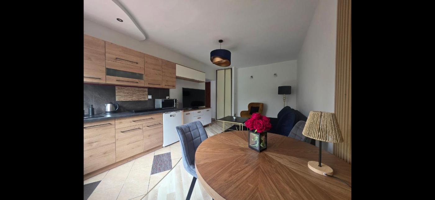 Apartament z 1 sypialnią. Boasting a private entrance, this apartment features 1 living room, 1 separate bedroom and 1 bathroom with a shower and a hairdryer. The well-equipped kitchenette has a stovetop, a refrigerator, kitchenware and a microwave. The apartment features a washing machine, a dining area, a wardrobe, an electric kettle and a flat-screen TV with cable channels. The unit has 2 beds. Apartament - 4 osobowy. Powierzchnia pokoju ok.: 44 mkw.