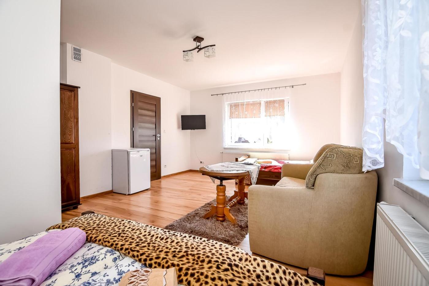 Pokój dwuosobowy. The double room features a private bathroom, a private entrance, soundproof walls, as well as a seating area with a flat-screen TV. Guests will find a stovetop, a refrigerator, a dishwasher and kitchenware in the kitchenette. The double room also offers a barbecue. Featuring a terrace, this double room also provides a tea and coffee maker, a dining area and a TV. Pokój Dwuosobowy - 3 osobowy. Powierzchnia pokoju ok.: 20 mkw. ;